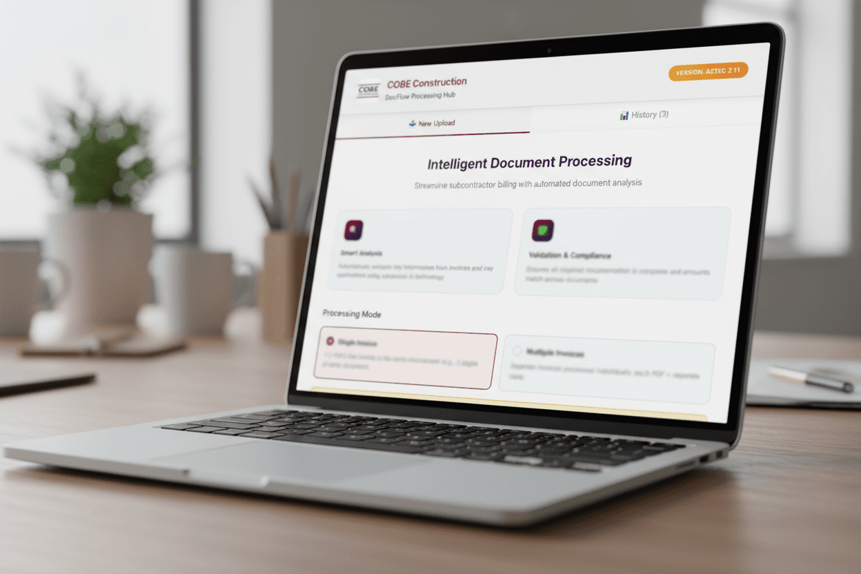 COBE Construction came to us ahead of a heavy billing cycle with a clear ask: cut the busywork in Accounts Payable. “Our staff spend a lot of time reviewing subcontractor applications for payment and processing them.” Forms often weren’t submitted accurately, which meant “a lot of back and forth with emails.” Hours piled up on manual checks instead of higher-value work—one teammate was spending about 36% of her week on this alone.